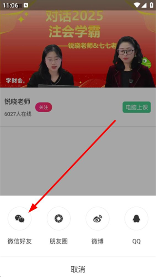 4、課程界面可分享課程內容,支持通過微信好友、朋友圈等渠道分享,便于將優質課程推薦給他人,助力共同學習。