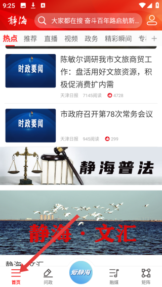 1、首頁聚合熱點推薦、時政要聞等欄目,靜海文旅調研、會議與普法宣傳、人文特輯交織,以資訊矩陣打造區域信息集散中心,滿足用戶一站式獲取本地新聞的需求。