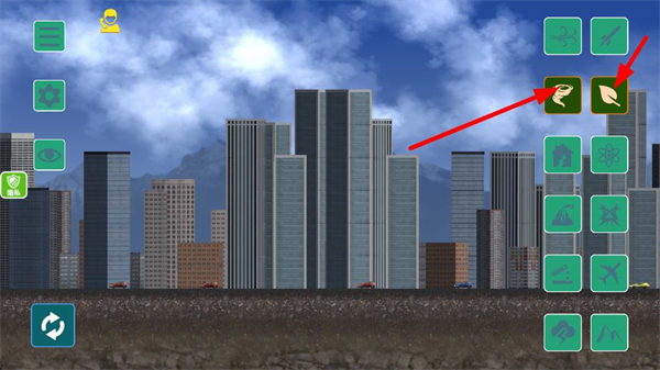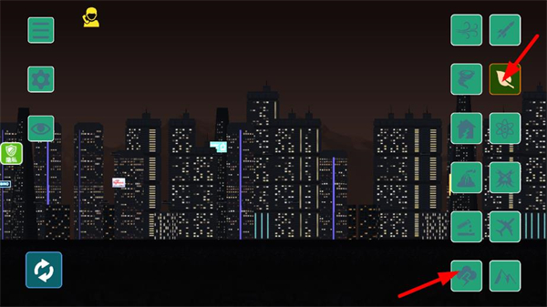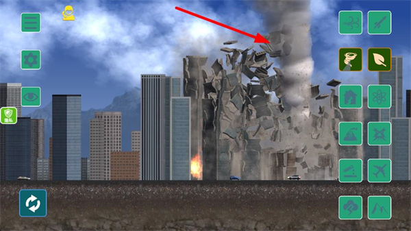 1、選擇右側對應的破壞類工具,點擊后即可對城市建筑觸發破壞效果,開啟城市場景的破壞互動,推進游戲進程。
