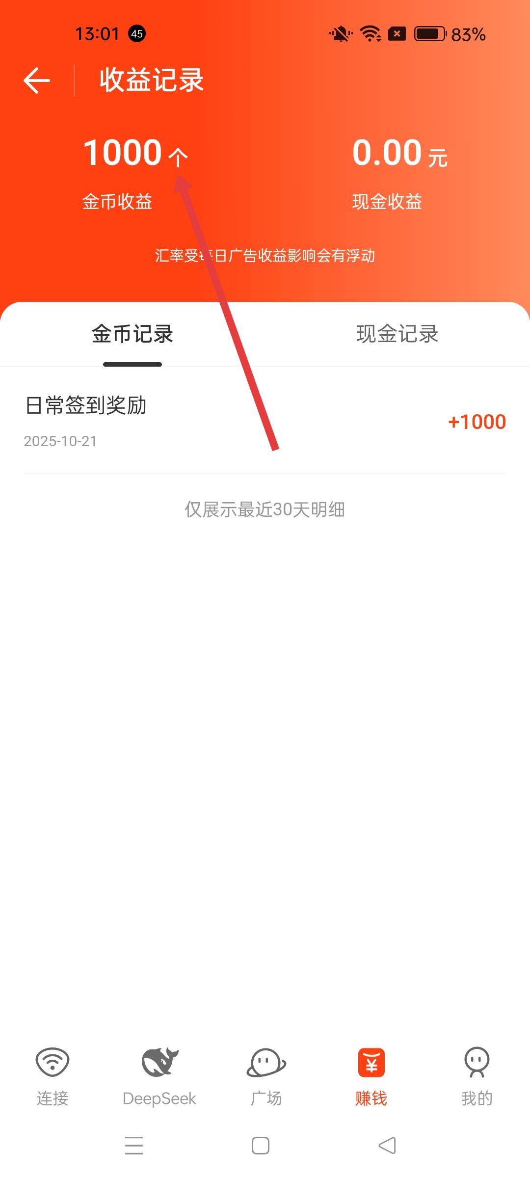 4、簽到完成后,可進入收益記錄頁面,查看金幣收益情況,能看到日常簽到獎勵等金幣獲取記錄。