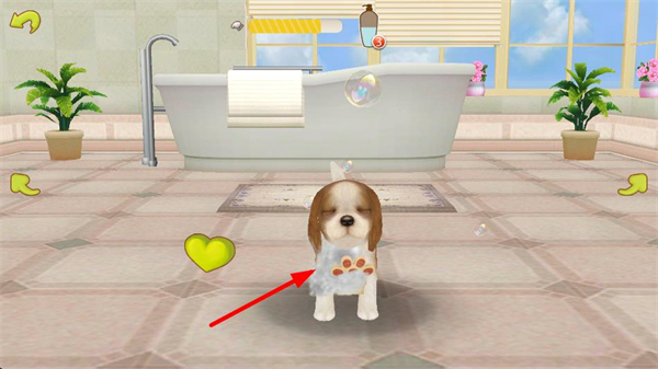 4、進入浴室場景,小狗會處于沐浴狀態,此時可進行互動,提升小狗的清潔度,同時增加與小狗的親密度,豐富游戲體驗。