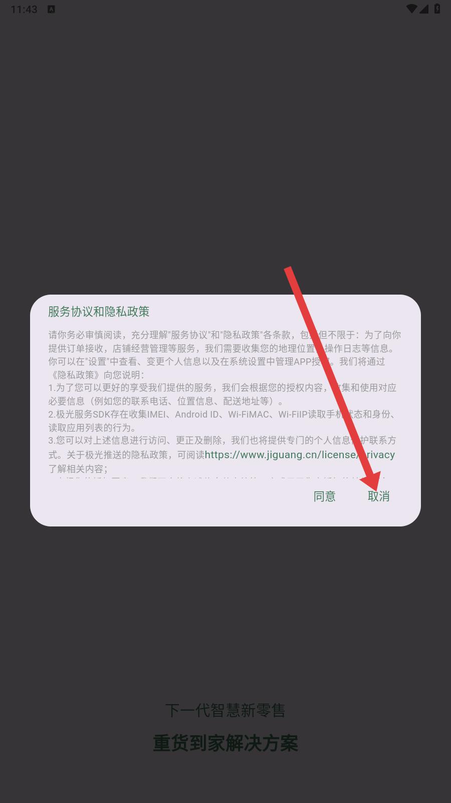 1、打開星店助手,若要簡化登錄,點擊記住密碼勾選框。彈出服務協議與隱私政策彈窗,閱讀后按需求選同意或取消。
