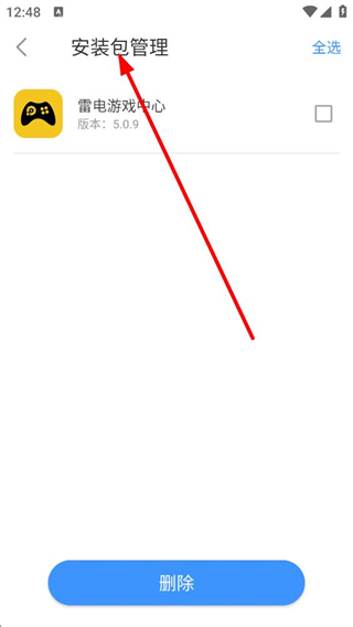 4、進入安裝包管理界面,看到存在的應用安裝包,可選擇對應安裝包,點擊刪除按鈕,完成安裝包的清理操作。