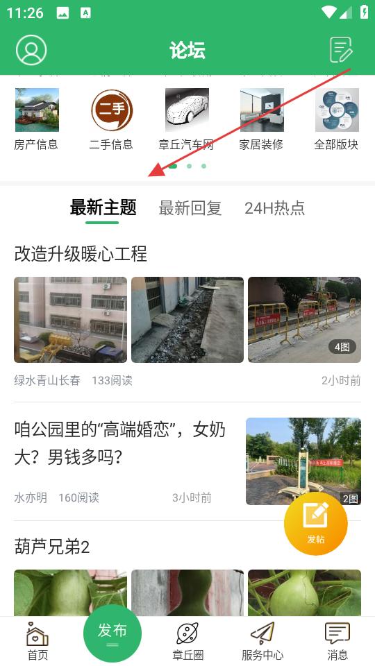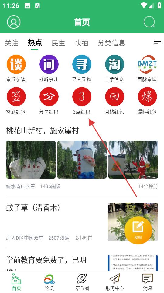 3、回到首頁在熱點板塊參與章丘雜談尋人尋物等話題,領取簽到紅包等福利,發布帖子分享生活。