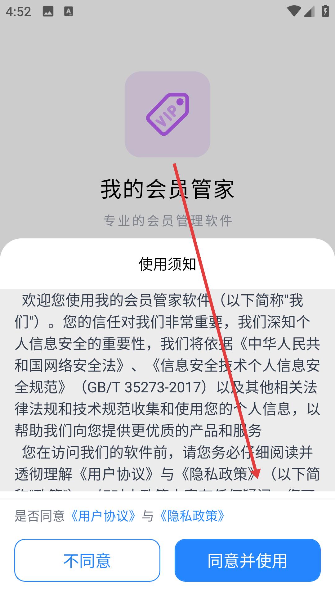 1、下載安裝完成后進入,需在用戶協議和隱私政策界面點擊同意,接受相關條款后才能進入應用。