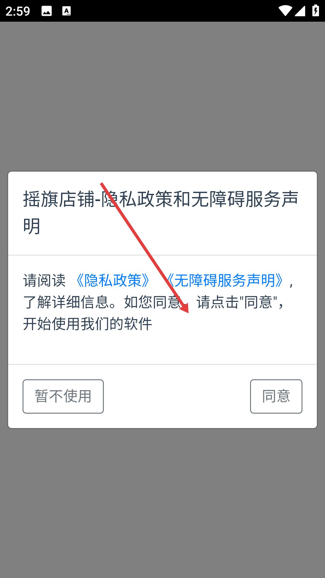 1、下載安裝完成后進入,需在用戶協議和隱私政策界面點擊同意,接受相關條款后才能進入應用。