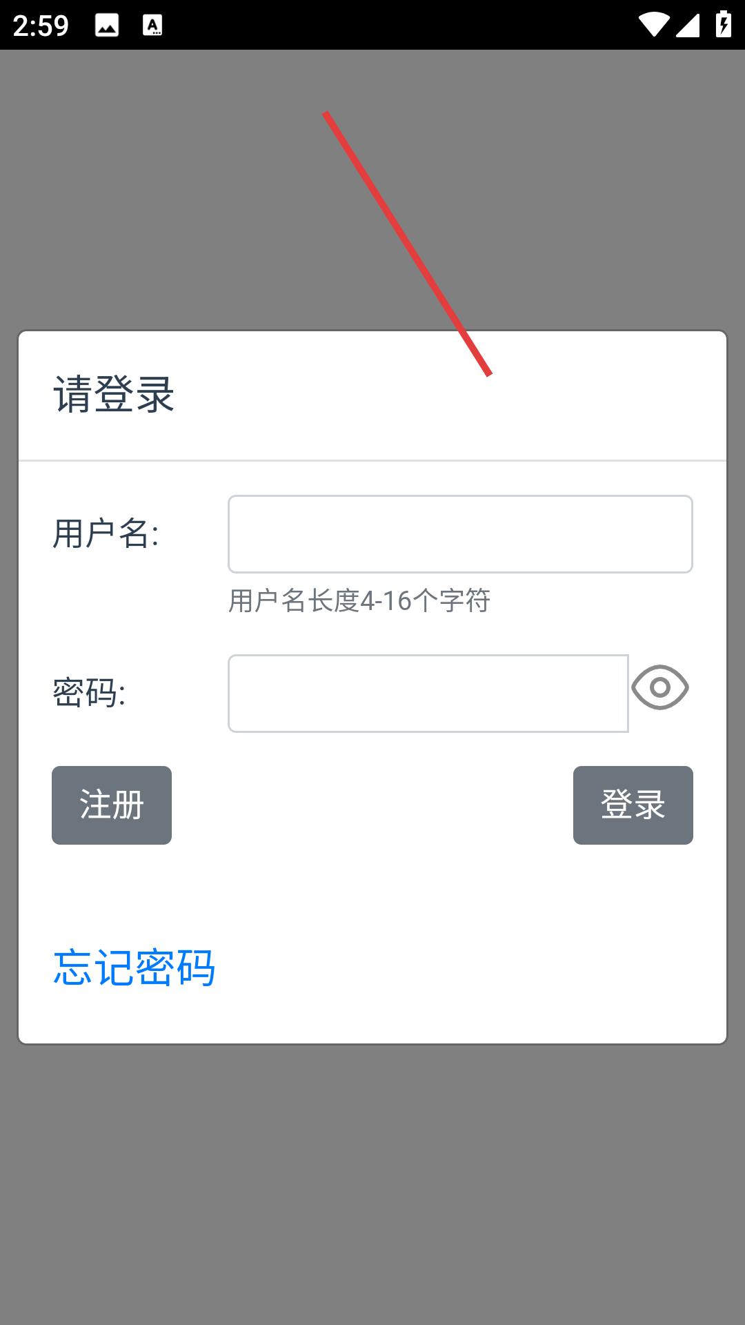 2、在搖旗店鋪的登錄頁面,需依次輸入用戶名和密碼,若沒有賬號可點擊注冊按鈕進行注冊,忘記密碼可點擊對應選項找回。