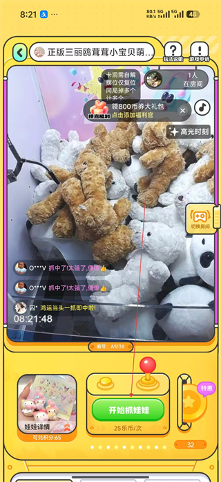 3、抓取過程中可查看房間內其他用戶的互動信息,若遇到游戲故障,可點擊對應按鈕申請申訴,完成操作后可繼續體驗或切換房間。