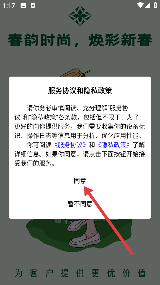 1、首次打開APP會彈出用戶協議及隱私政策界面,需仔細閱讀后點擊同意才能繼續使用APP,這一步是為了確保用戶了解并同意平臺使用個人信息的規則。