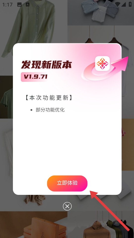 2、出現發現新版本提示,告知用戶部分功能優化,點擊立即體驗可更新并體驗新功能,若不想更新可點擊關閉按鈕。