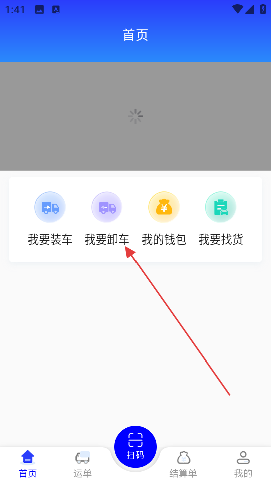 2、登錄后進入首頁,瀏覽我要裝車、我要卸車等功能,點擊我要卸車,進入卸車業務操作頁面。