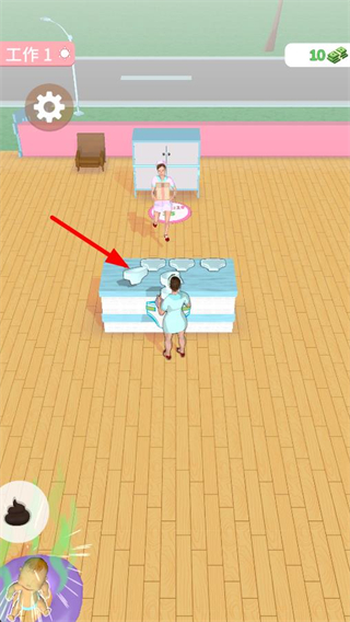 3、前往擺放著尿布的操作臺,在操作臺前進行尿布收集,完成后可推進育嬰流程,讓工作進度進一步提升。