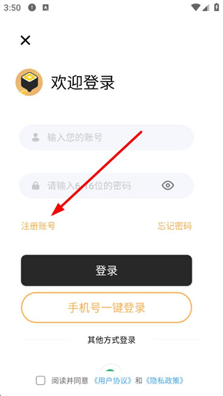 3、點擊登錄、注冊后進入歡迎登錄界面,可輸入賬號與密碼完成登錄,也能選擇注冊賬號或找回密碼,還可通過手機號一鍵登錄等方式進行操作。