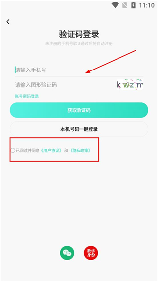 1、打開行山百業APP,進入驗證碼登錄頁面,輸入手機號,填寫圖形驗證碼,勾選已閱讀并同意用戶協議和隱私政策,完成賬號登錄。