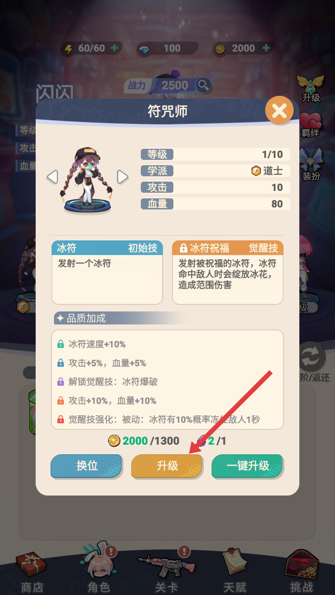 4、查看角色詳細信息時,若有【升級】按鈕,點擊它,可消耗相應資源提升角色等級,增強角色能力。