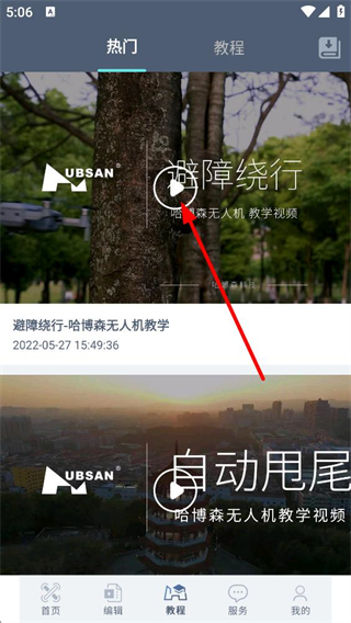 2、進入教程頁面的熱門板塊,呈現避障繞行等無人機教學視頻,點擊目標視頻即可進入播放界面學習操作。