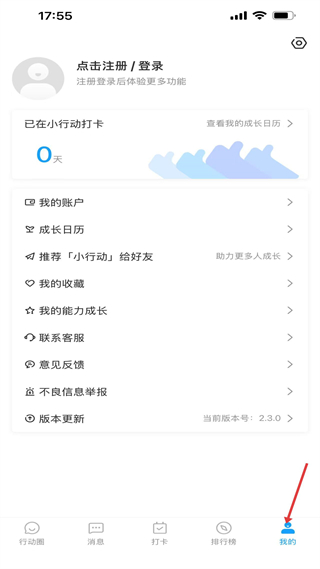 4、我的界面,可查看打卡天數、管理賬戶收藏,還有能力成長、客服反饋等功能,是用戶管理個人信息的中心。