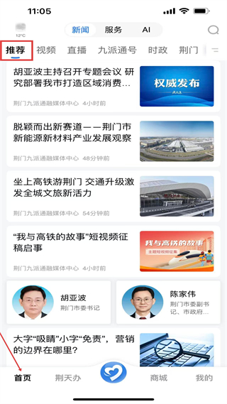 1、進入九派通新聞首頁,默認顯示推薦類新聞內容,涵蓋本地各類資訊,可瀏覽最新發布的新聞報道了解相關動態。