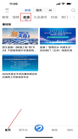 2、在首頁點擊直播分類,進入直播板塊,可查看各類直播的回放內容,獲取對應活動或會議的相關信息。