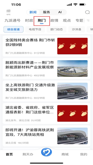 4、選擇荊門分類,進入荊門本地新聞板塊,可查看該市賽事、產業發展等本地相關的資訊報道。