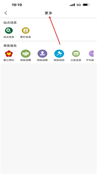 2、更多頁面,有站點信息、票價信息等服務板塊,還有愛心預約、地鐵招聘等乘客服務選項。
