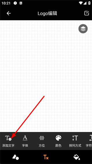 2、進入Logo編輯界面,底部有添加文字、字體等編輯工具,點擊添加文字,可激活輸入框,準備輸入所需的文字內容來豐富LOGO元素。
