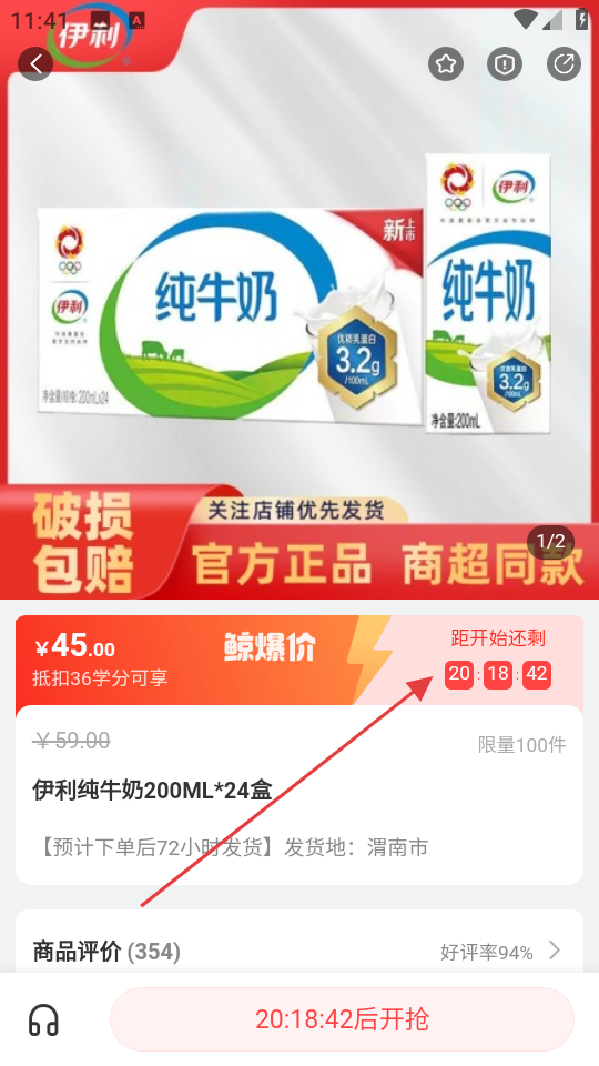 3、在商品詳情頁,留意活動倒計時,等待開搶時間,到點后按提示下單,完成優惠商品購買流程。