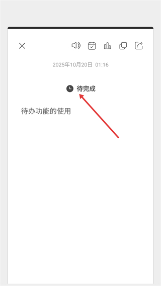 3、待辦功能使用記錄,標注時間為2025年10月20日01:16,狀態為待完成,可直觀查看待辦進展。