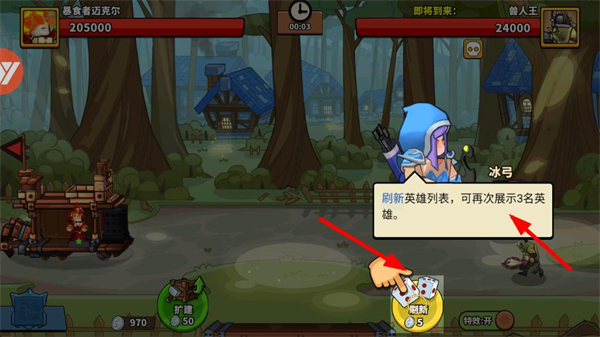 3、可點擊刷新按鈕,刷新英雄列表,再次展示3名英雄,獲取心儀英雄參與精彩的戰斗。