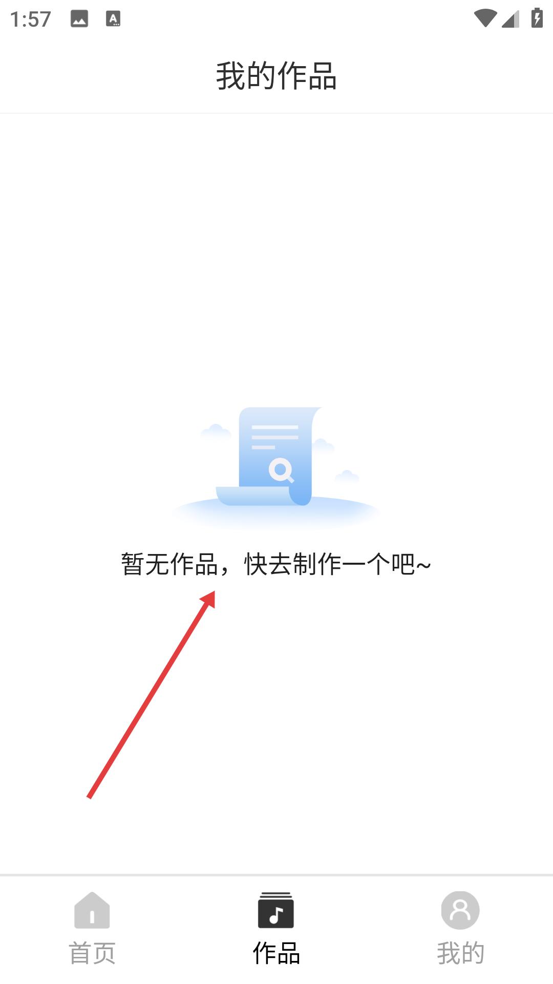 3、在我的作品頁面若暫無作品會有提示,用戶可點擊相關功能去制作音頻作品,豐富個人音頻內容。