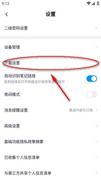 2、進入設置界面中瀏覽列表內容,找到下載設置選項,點擊進入下載設置頁面。