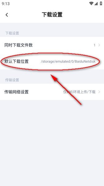 3、進入下載設置頁面后,找到默認下載位置選項,點擊該選項,即可查看或修改文件默認的下載存儲路徑。