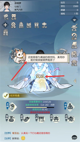 3、修煉過程可突破境界,突破時會有修為滿溢的提示,突破成功提升境界,增強修仙能力。