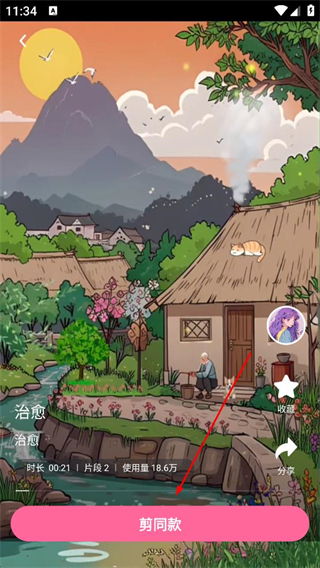 2、在模板詳情頁面點擊剪同款按鈕,開始使用該模板制作同款視頻。