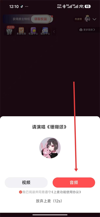 4、在歌房演唱準備頁勾選已閱讀并同意相關協議,選擇音頻演唱模式,點擊開始演唱,即可參與珊瑚頌的合唱活動。
