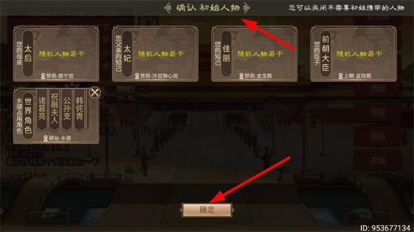 2、需確認初始人物,如太后、太妃等角色,選擇后點擊確定按鈕,開啟帝王治國生涯。