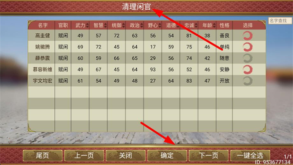 4、可進行清理閑官操作,選擇閑官后點擊確定按鈕,優化官員結構,提升治國效率。