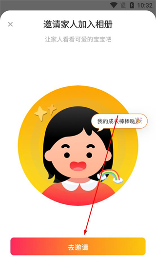 2、在邀請家人加入相冊頁查看頁面提示內容,點擊去邀請按鈕,進入邀請家人的選擇界面,準備選定邀請對象。