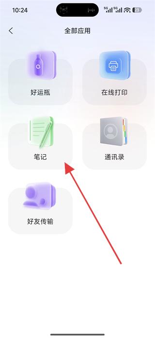 3、進入全部應用頁面后,找到筆記選項并點擊,進入筆記功能界面,可在其中進行筆記的創建、編輯等操作。