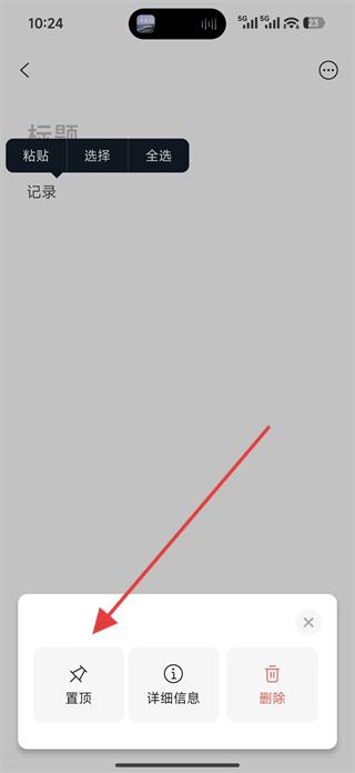 4、在筆記記錄頁面,點擊相應功能按鈕,可對筆記進行置頂以便快速查找、查看詳細信息了解筆記詳情或刪除不需要的筆記,滿足不同的筆記管理需求。