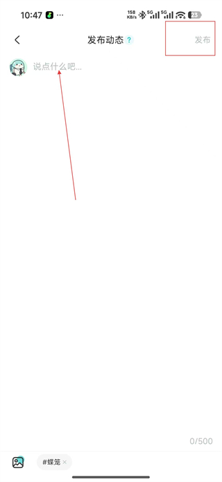 4、在發布動態頁面輸入想要分享的內容,確認后點擊發布按鈕,即可將自己的動態分享至該話題下。