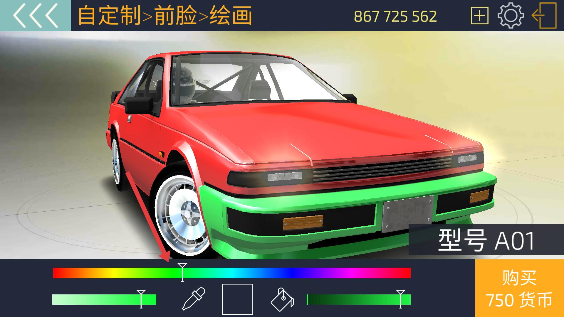 3、有顏色選擇條,拖動選擇條可挑選喜歡的顏色,為車輛前臉進行繪畫裝飾,打造獨特外觀。