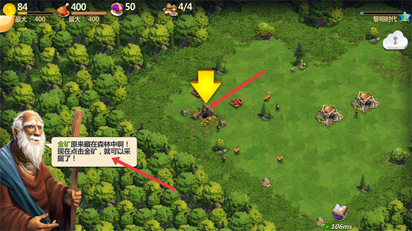 2、金礦隱藏在森林里,點擊金礦即可開始發掘,獲取金礦資源,為部落發展提供更多物資支持。