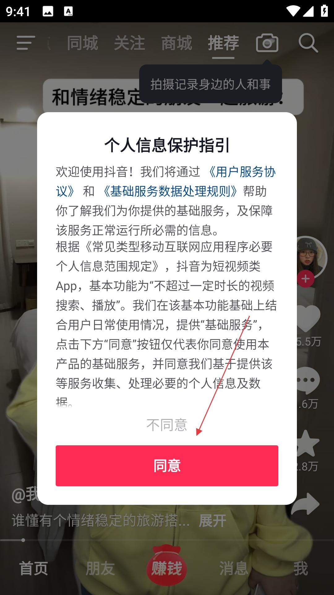 1、下載安裝完成后進入,需在用戶協議和隱私政策界面點擊同意,接受相關條款后才能進入應用。