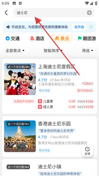 1、打開智行火車票app,下方是搜索的教程,我們可以在搜索欄輸入迪士尼,看到上海迪士尼度假區等選項。
