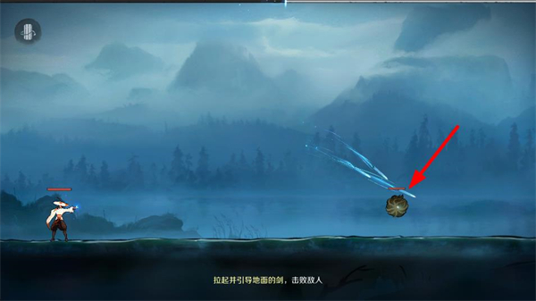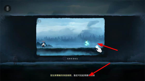 2、按壓屏幕觸發劍流吸附,靠近拉起場景里的劍,掌握劍技的基礎操作,提升戰斗能力。