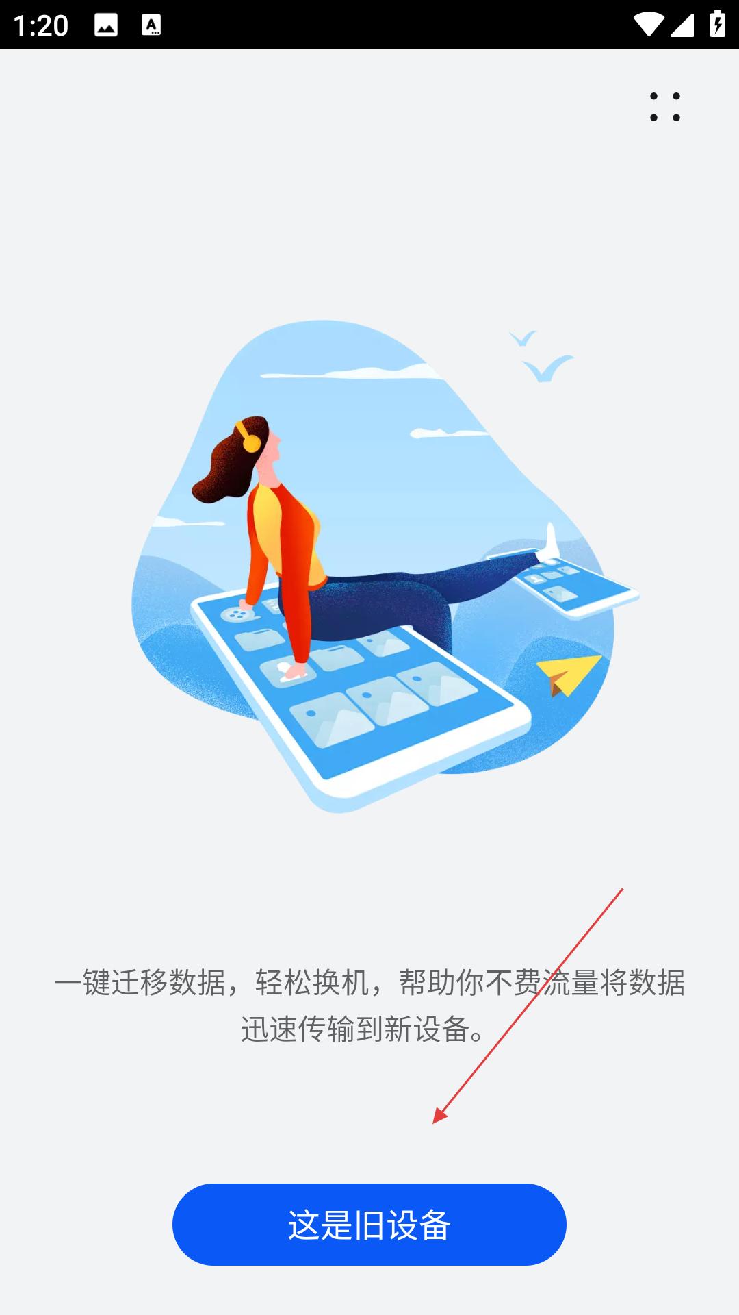 2、一鍵遷移數據界面,用戶可點擊這是舊設備,幫助用戶不費流量將數據迅速傳輸到新設備。