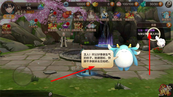 1、跟隨主線任務與師父對話,推進劇情發展,解鎖新玩法和功能,提升角色等級和戰力,闖蕩仙俠世界。