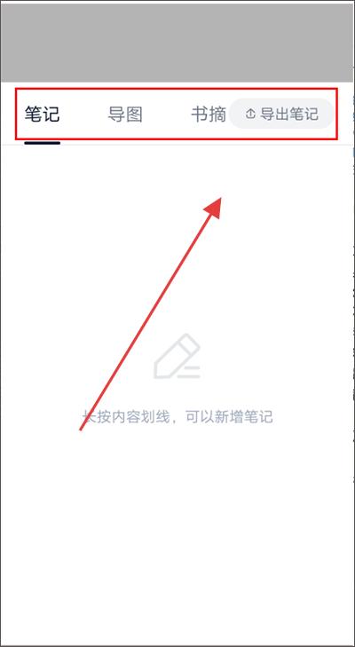 3、筆記頁面有筆記、導圖、書摘分類,長按內容劃線可新增筆記,還能導出筆記,助力梳理閱讀收獲,深化對書籍的理解。