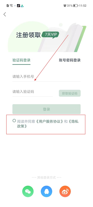 1、進入登錄頁面,勾選同意相關協議,選擇驗證碼登錄方式,輸入手機號并獲取驗證碼,完成登錄。